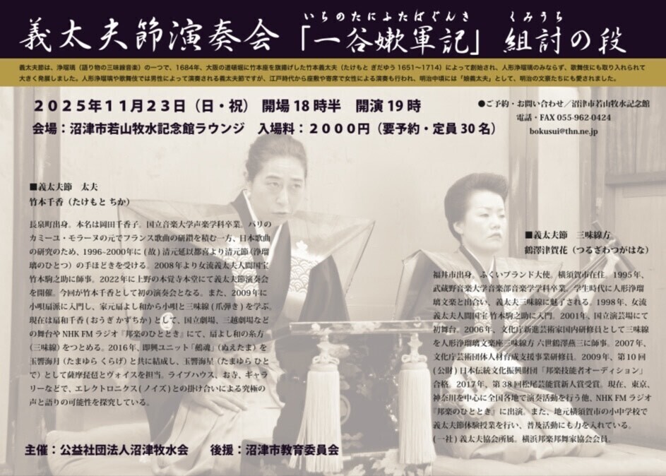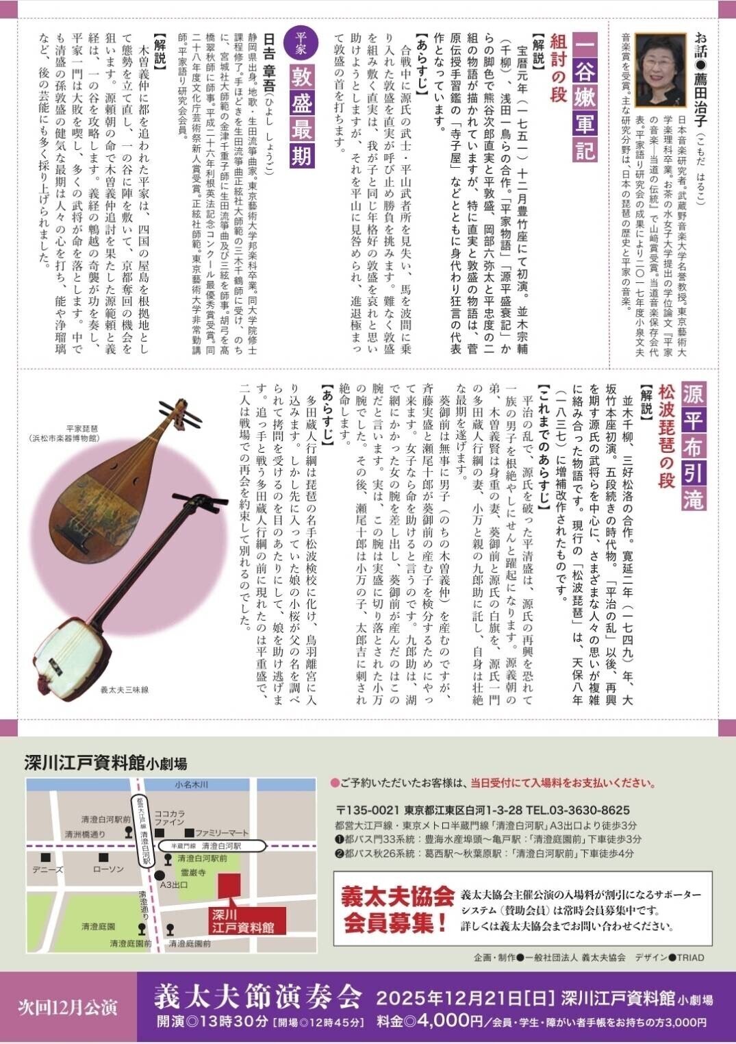 〈東京〉義太夫節演奏会11月公演 義太夫における平家物語 | |