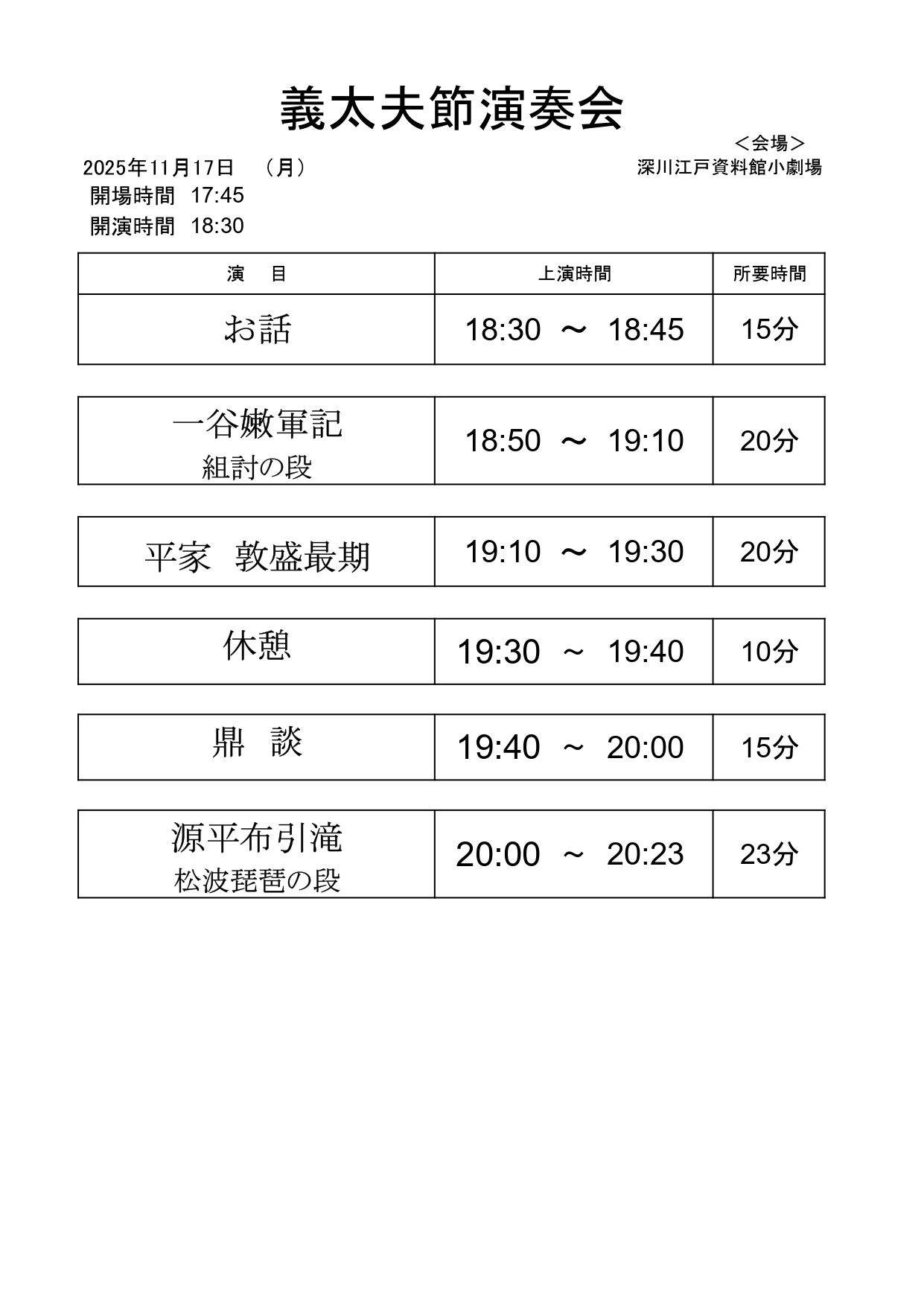 | 〈東京〉義太夫節演奏会11月公演 義太夫と平家琵琶 | |