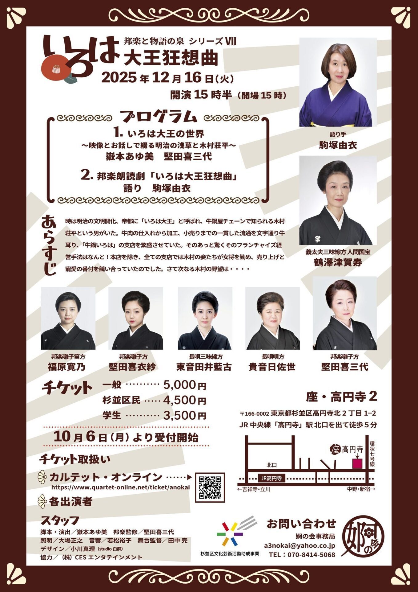 料金 | 一般:5,000円 杉並区民:4,500円 学生:3,500円 チケット取り扱い ◆カルテットオンライン https://www.quartet-online.net/ticket/anokai ◆各出演者 |