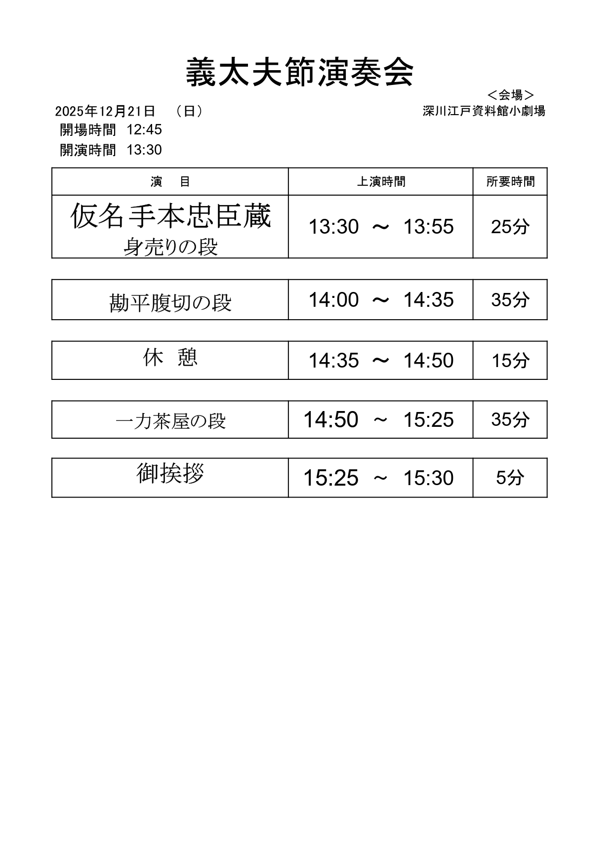 | 〈東京〉義太夫節演奏会12月公演 「仮名手本忠臣蔵」 | |