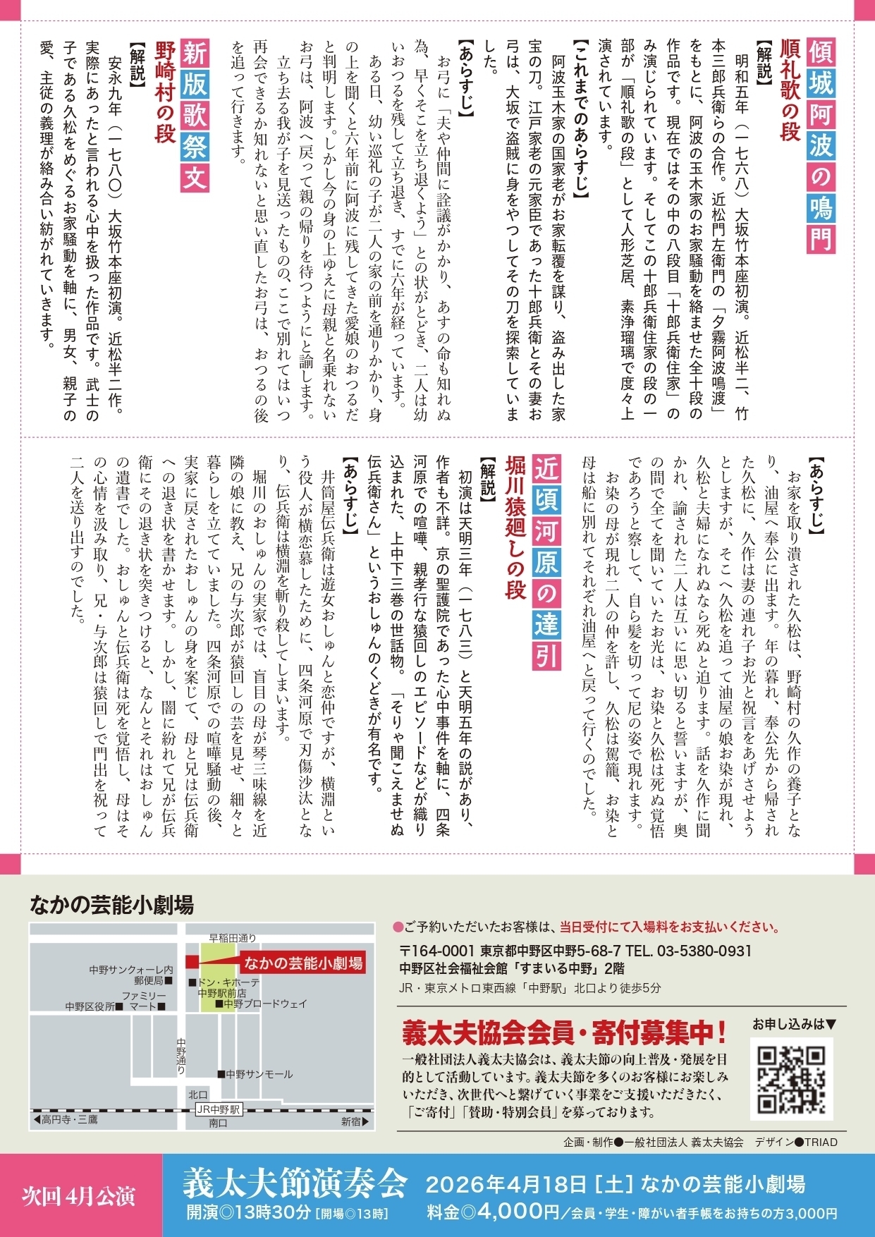 | お問い合わせ | (一社)義太夫協会 tel: 03-6264-3047 (平日10〜17時) email: [email protected] |