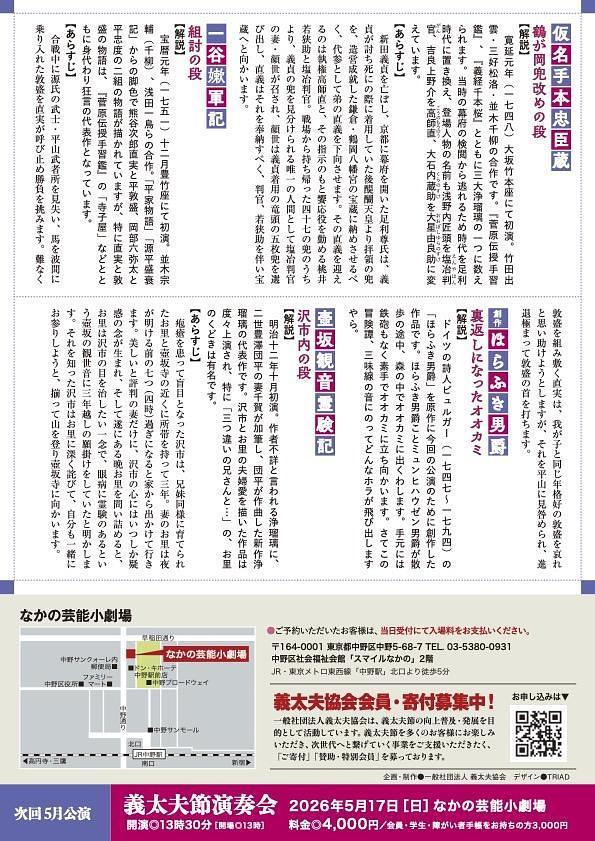 | お問い合わせ | (一社)義太夫協会 tel: 03-6264-3047 (平日10〜17時) email: [email protected] |